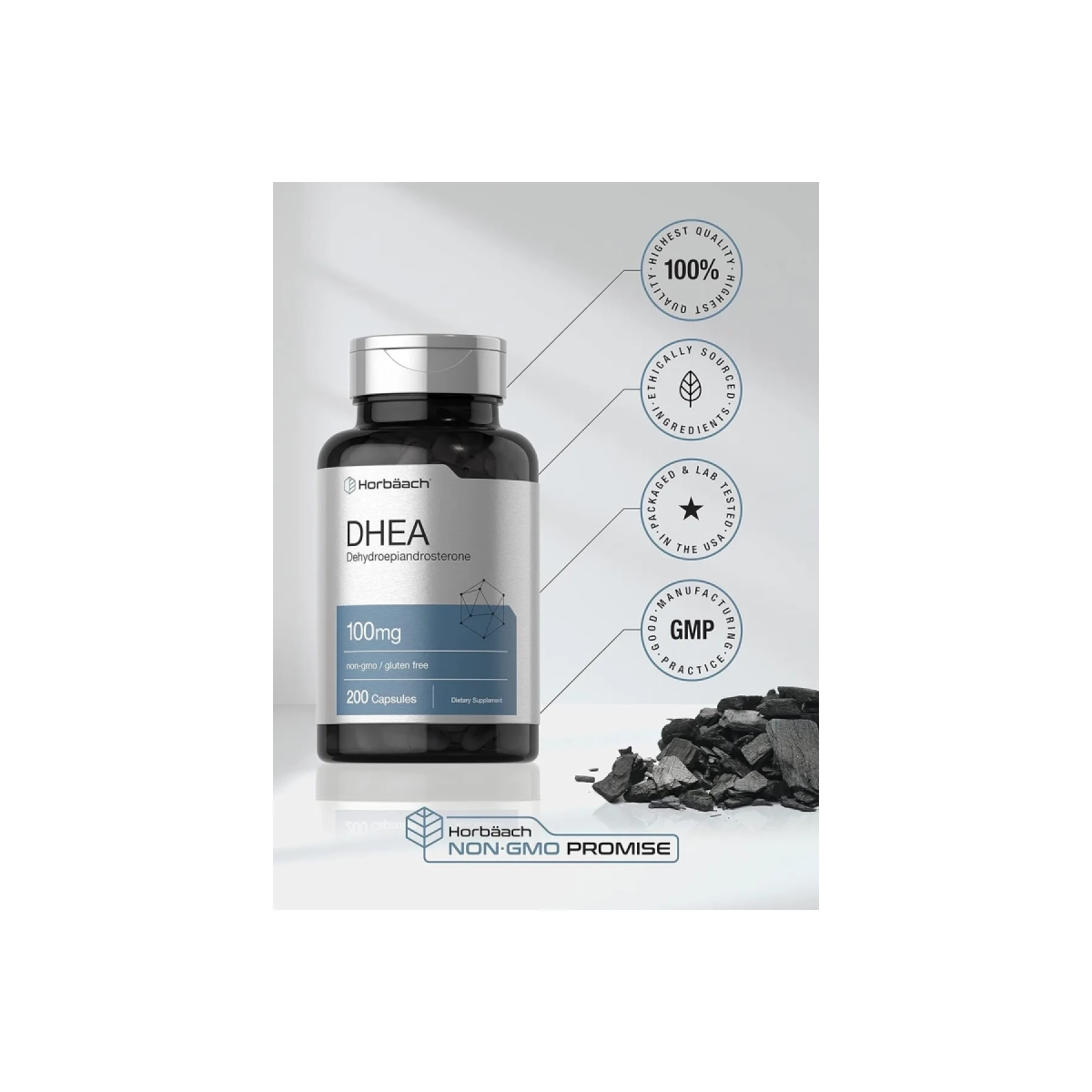Horbäach DHEA 100mg – 200 cápsulas | Suplemento de alta potencia para hombres y mujeres